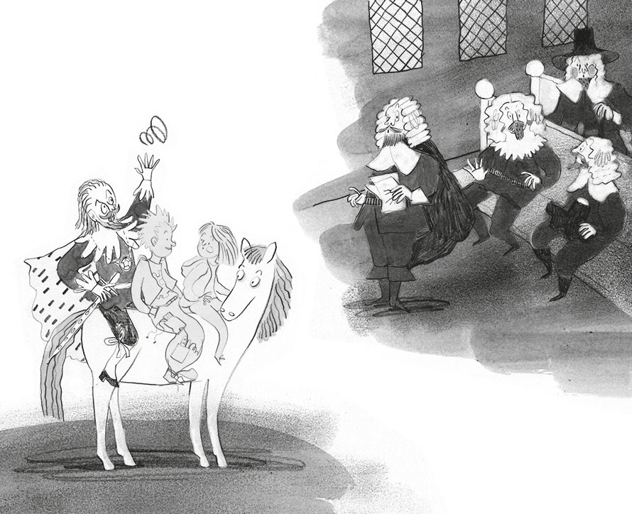 Chapter book - cover and 20 plus black & white interior illustrations. Published by Little Island Press, written by Caroline Logue. Historical adventure aimed at 8-10 year olds.
