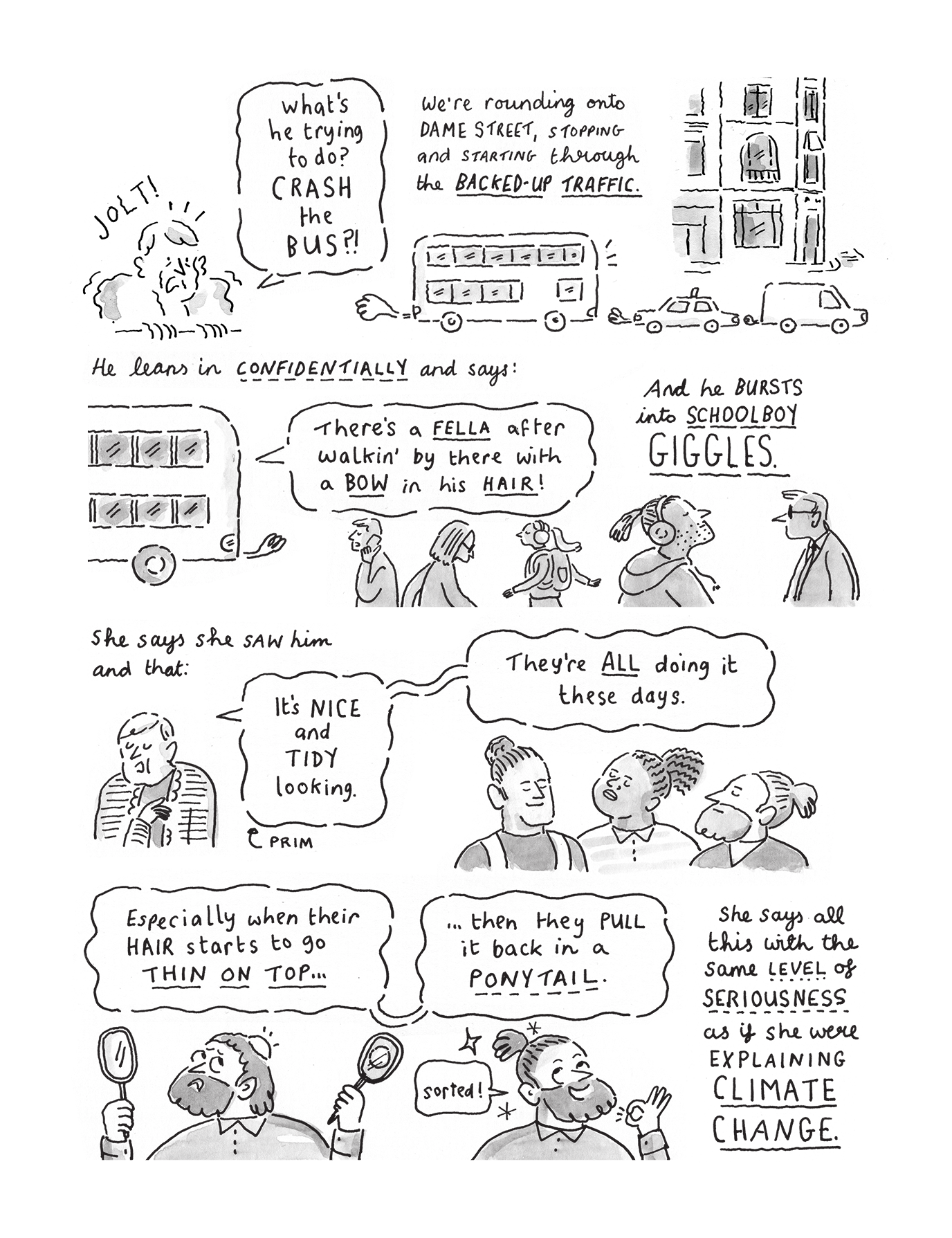 A Dublin Love Story is a comic strip recording the overheard conversation of an older couple on the bus into town one morning. It was published in the Irish Times for Valentine's Day.