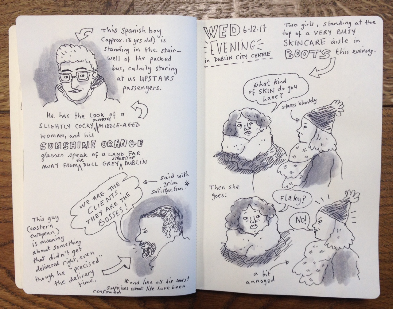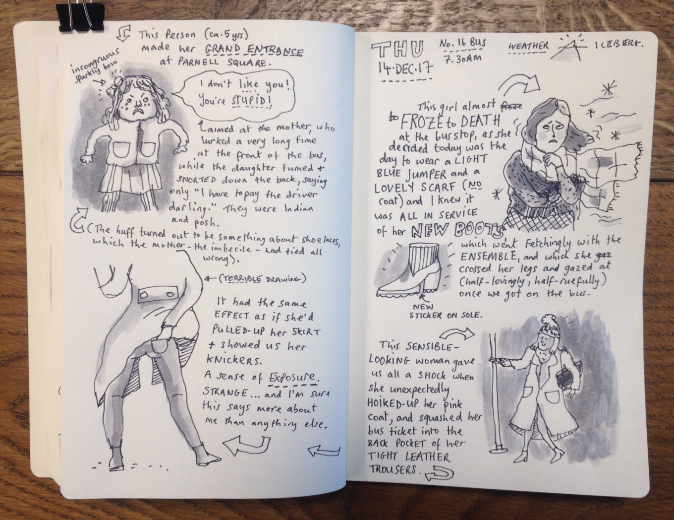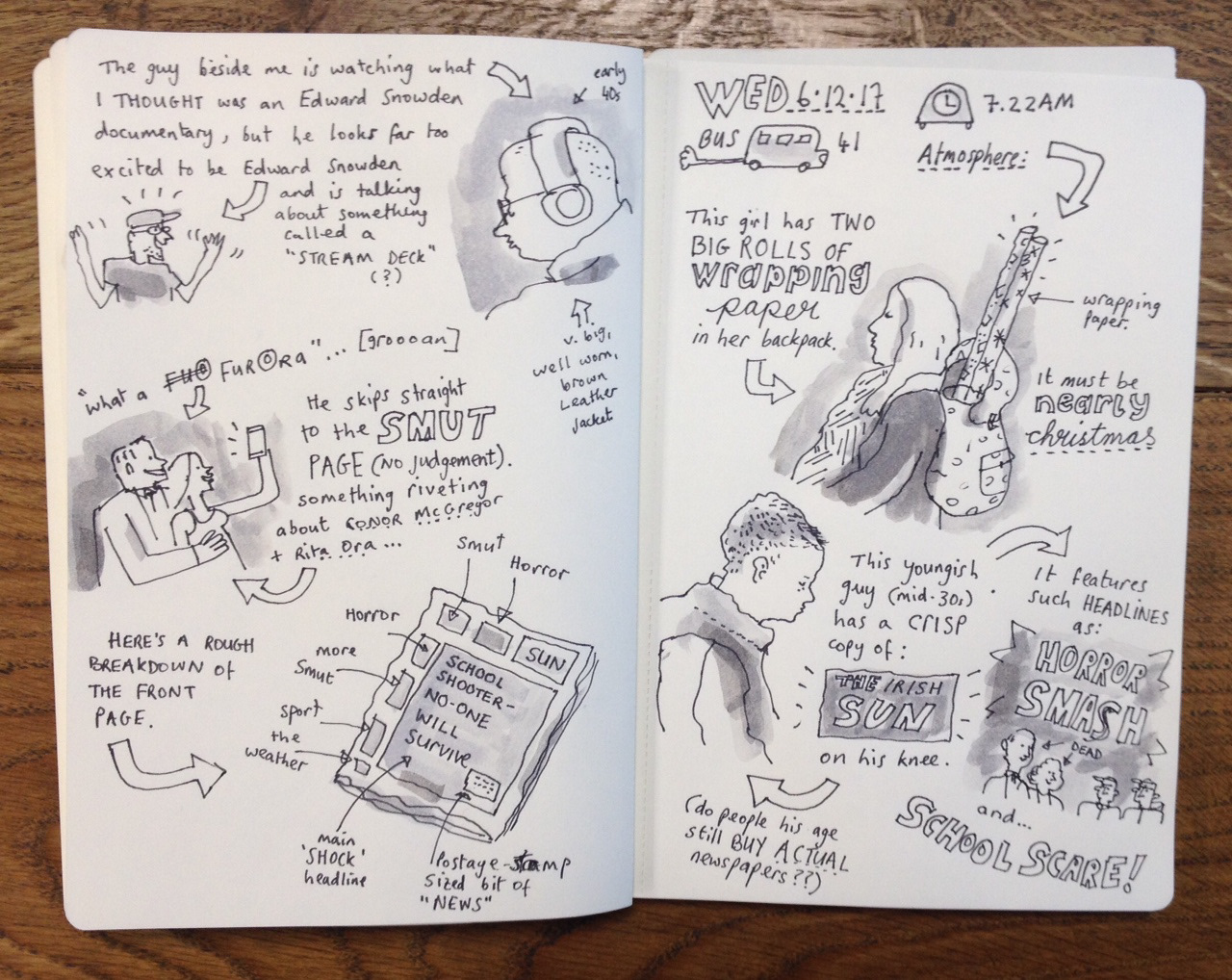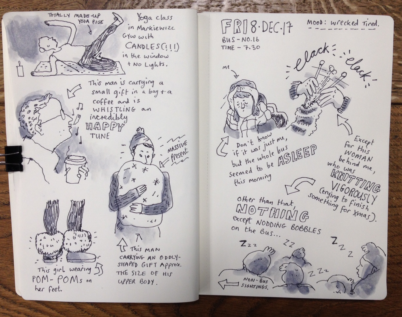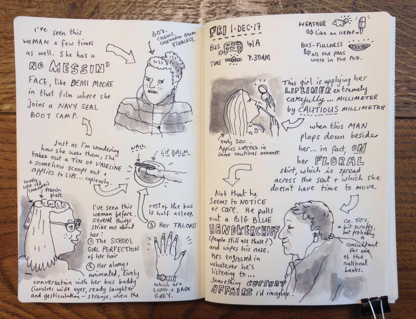 A round-up of daily sketches from my morning bus commute.
