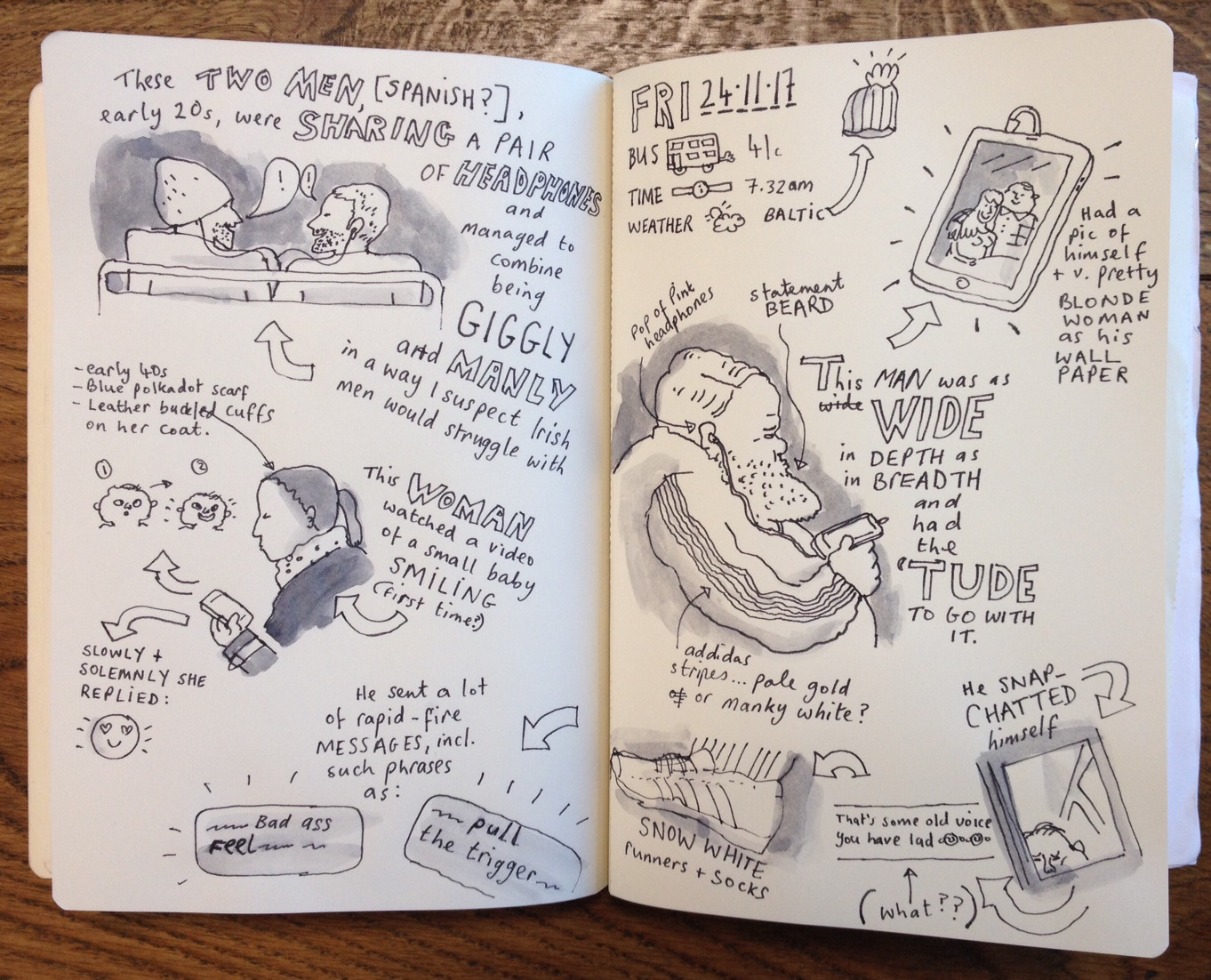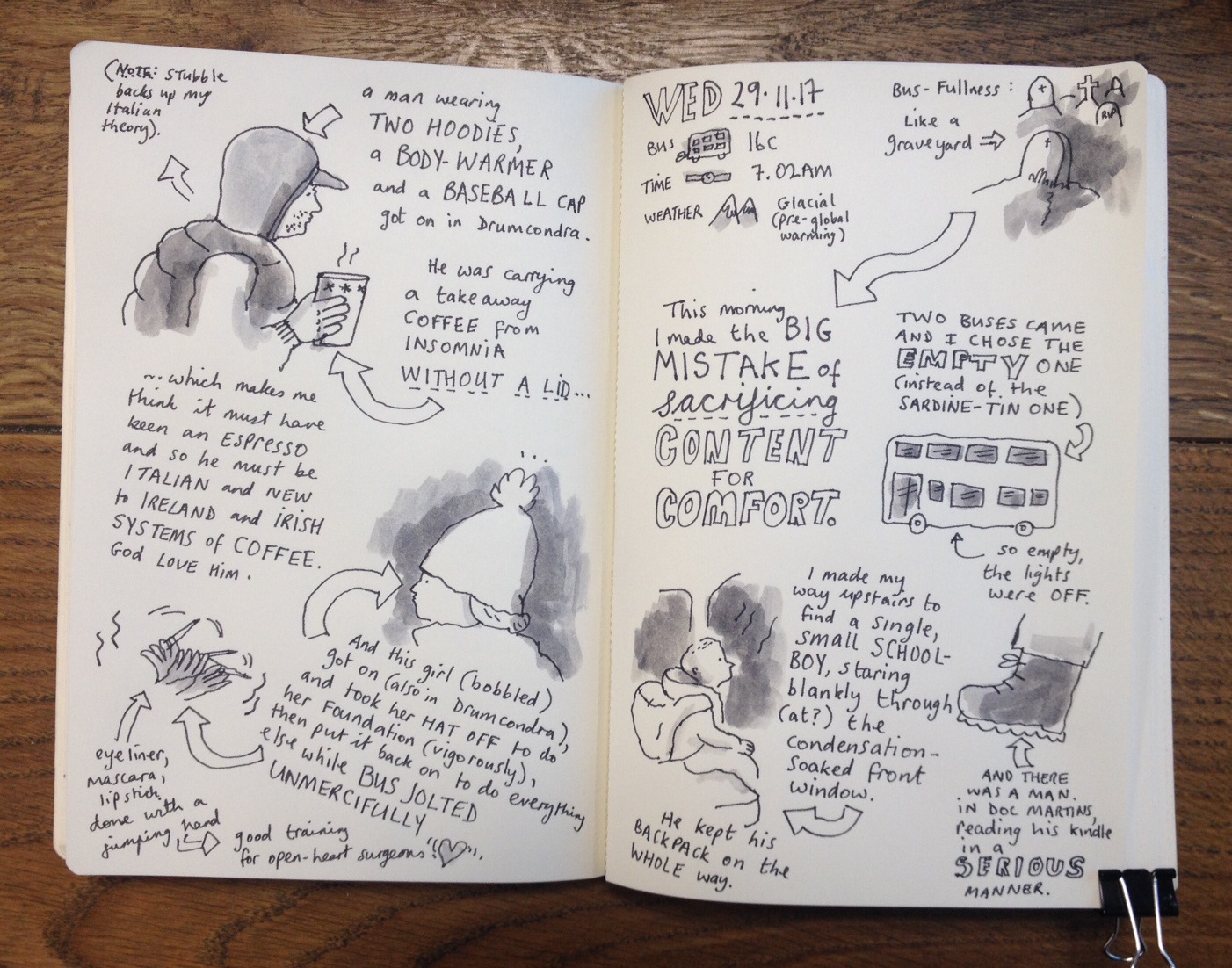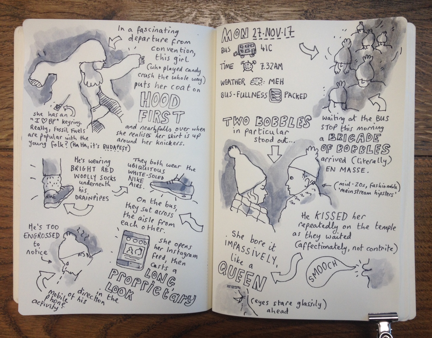 A round-up of daily sketches from my morning bus commute.