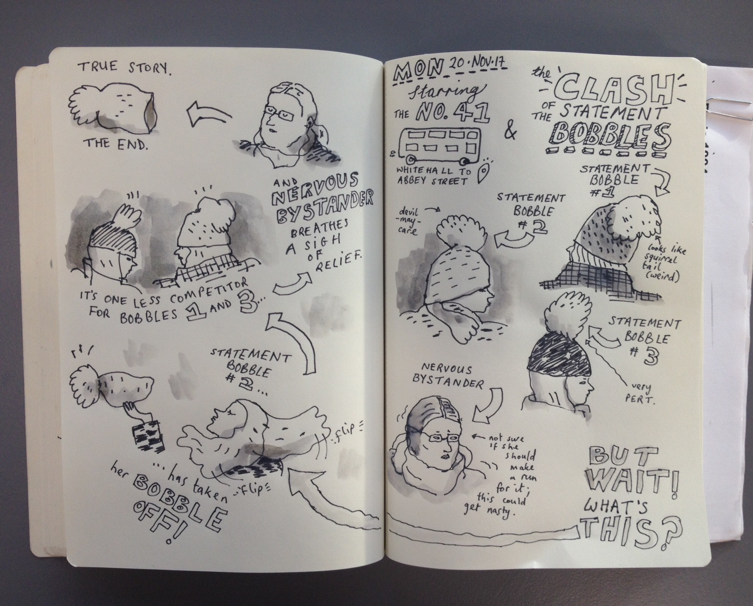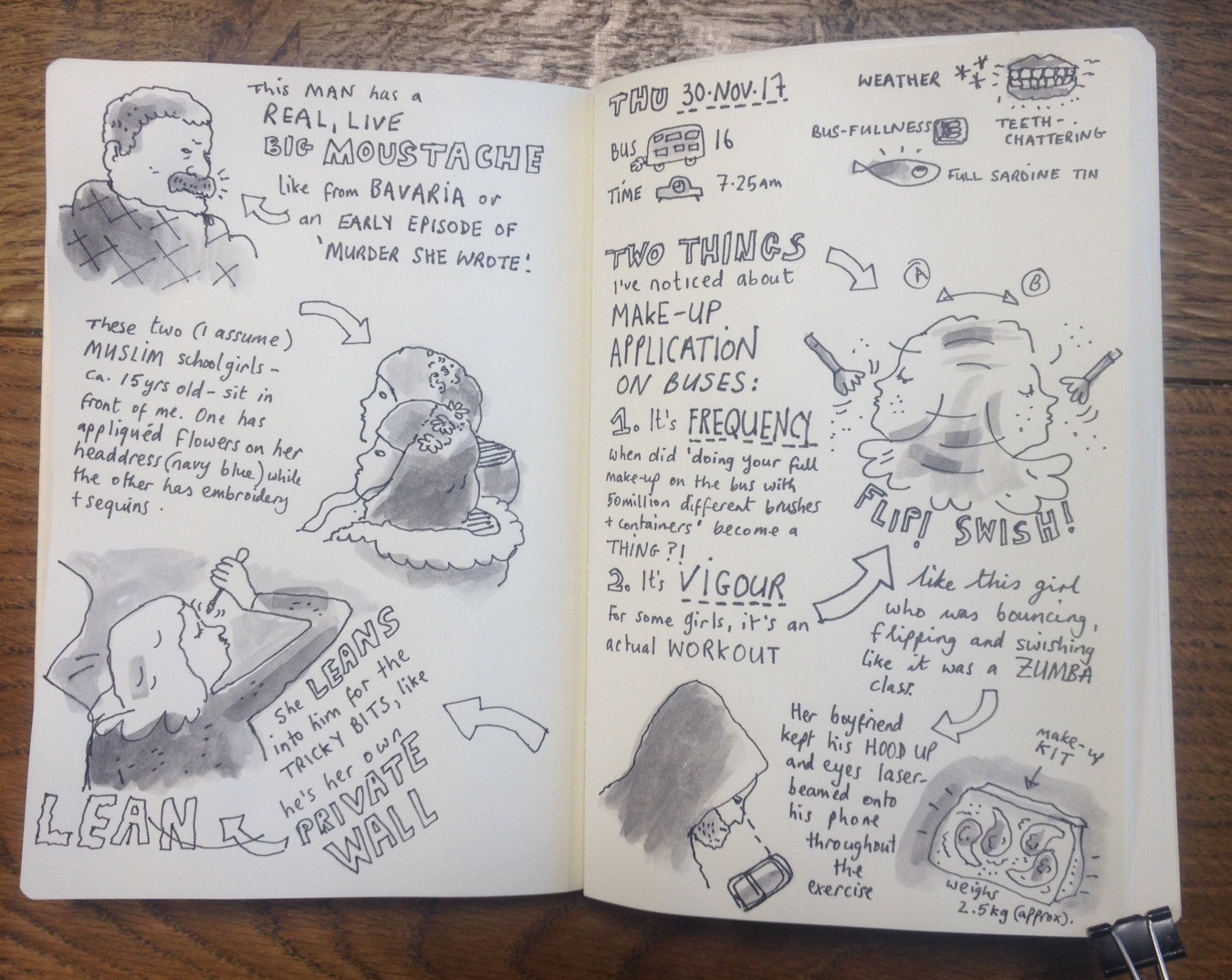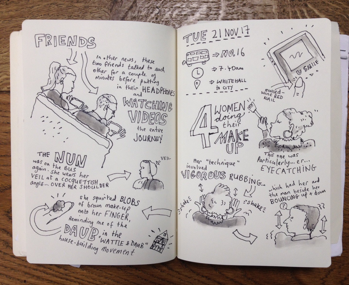 A round-up of daily sketches from my morning bus commute.