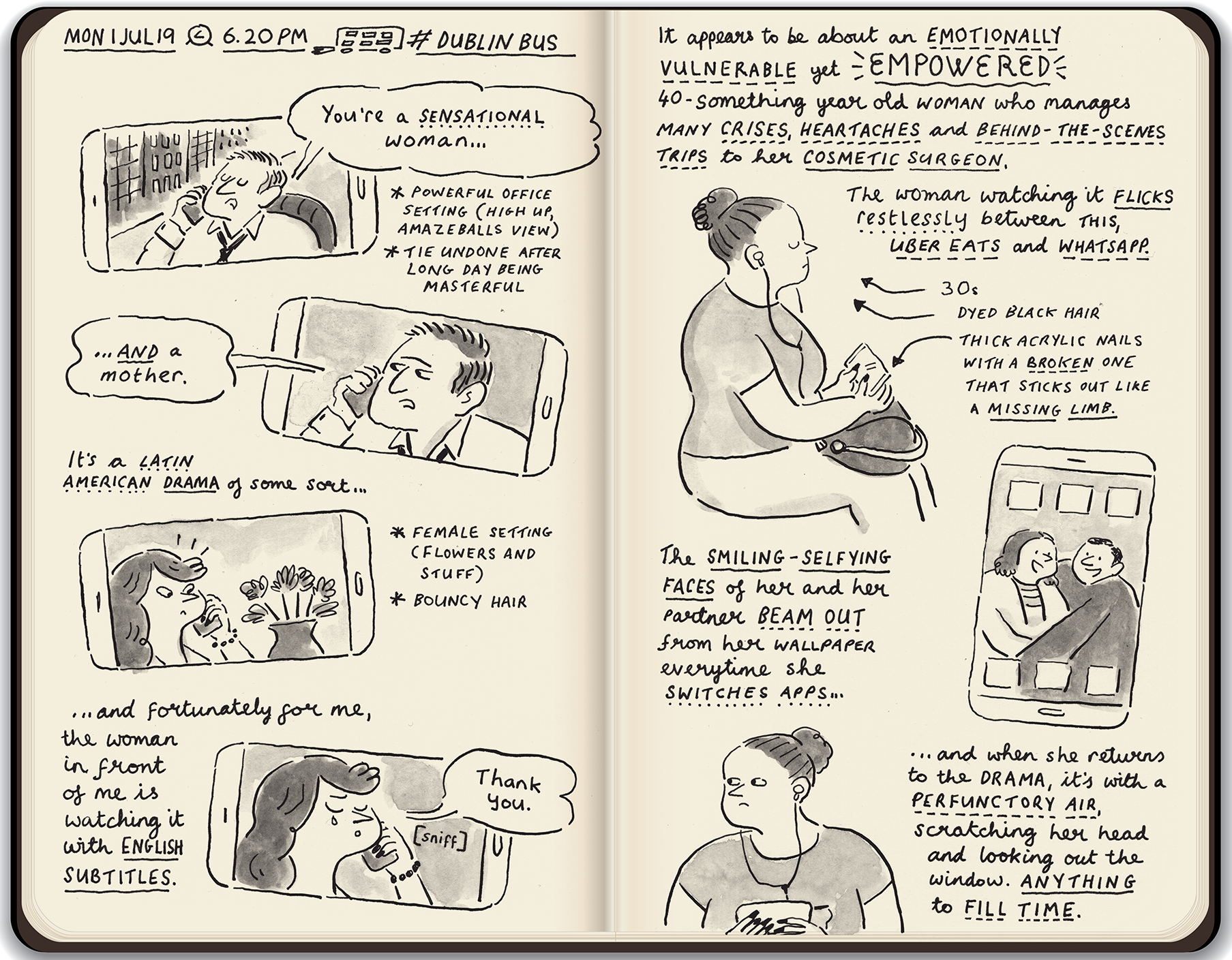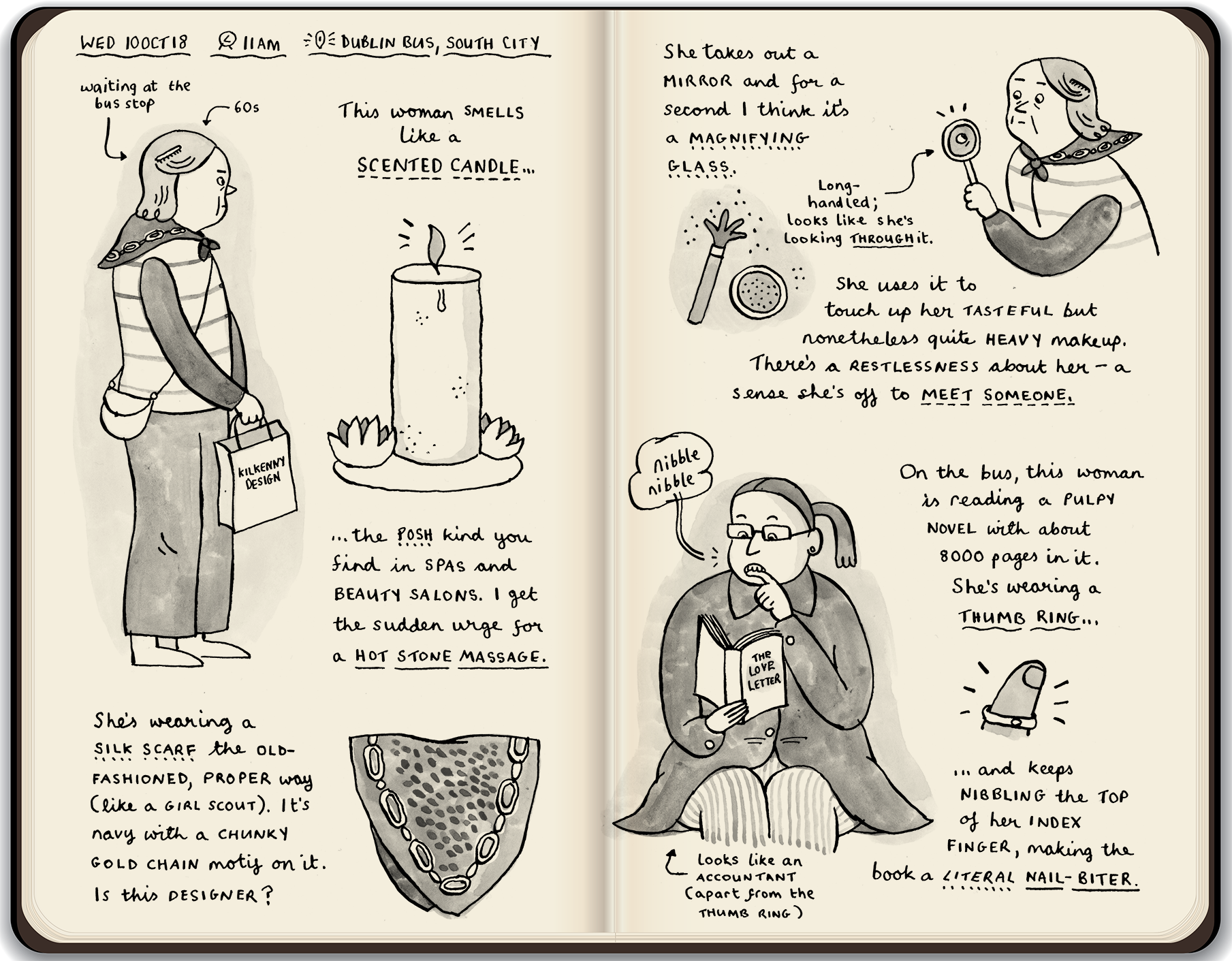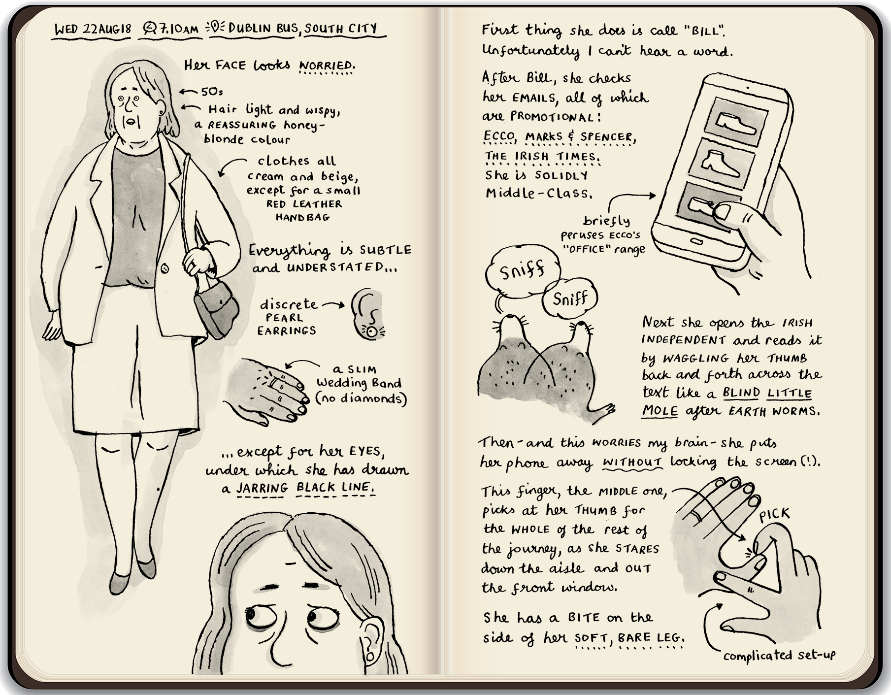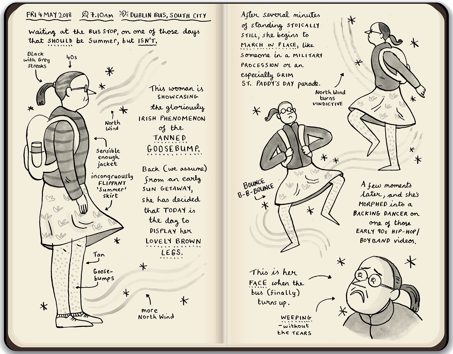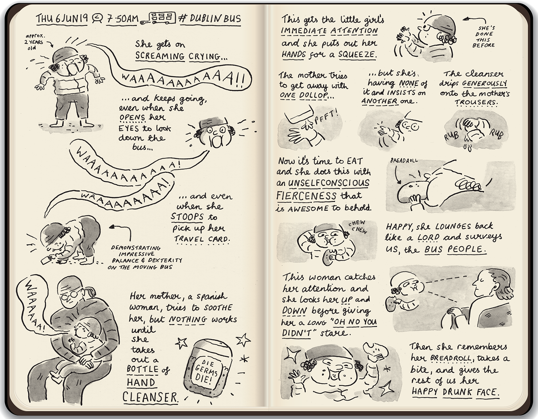 Here's a selection from my urban diary series that ran from 2017 till the outbreak of the pandemic in 2020. Based in Dublin City, it recorded observational snippets from my daily commute, coffee shops, shopping centres and more. Check out my Instagram for the full archive.