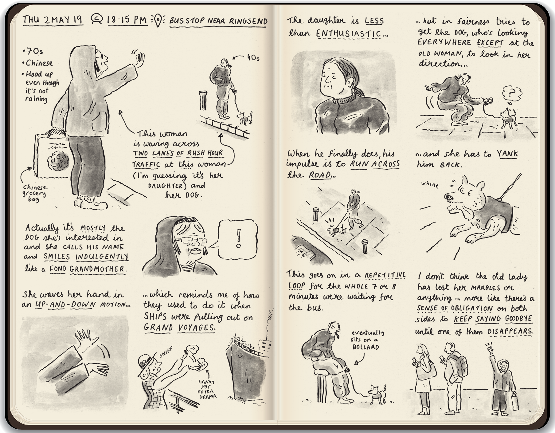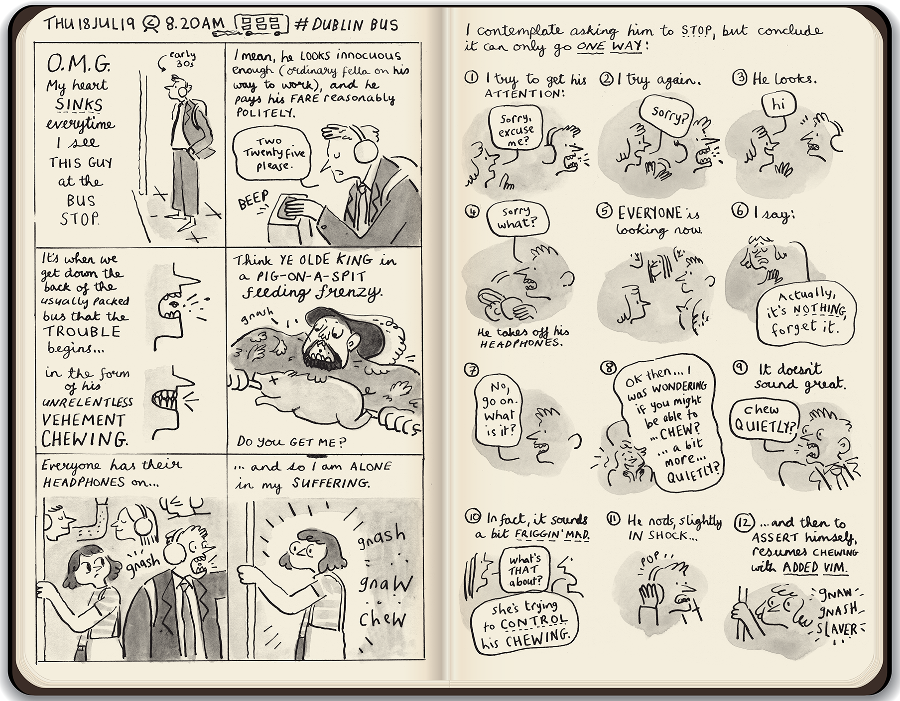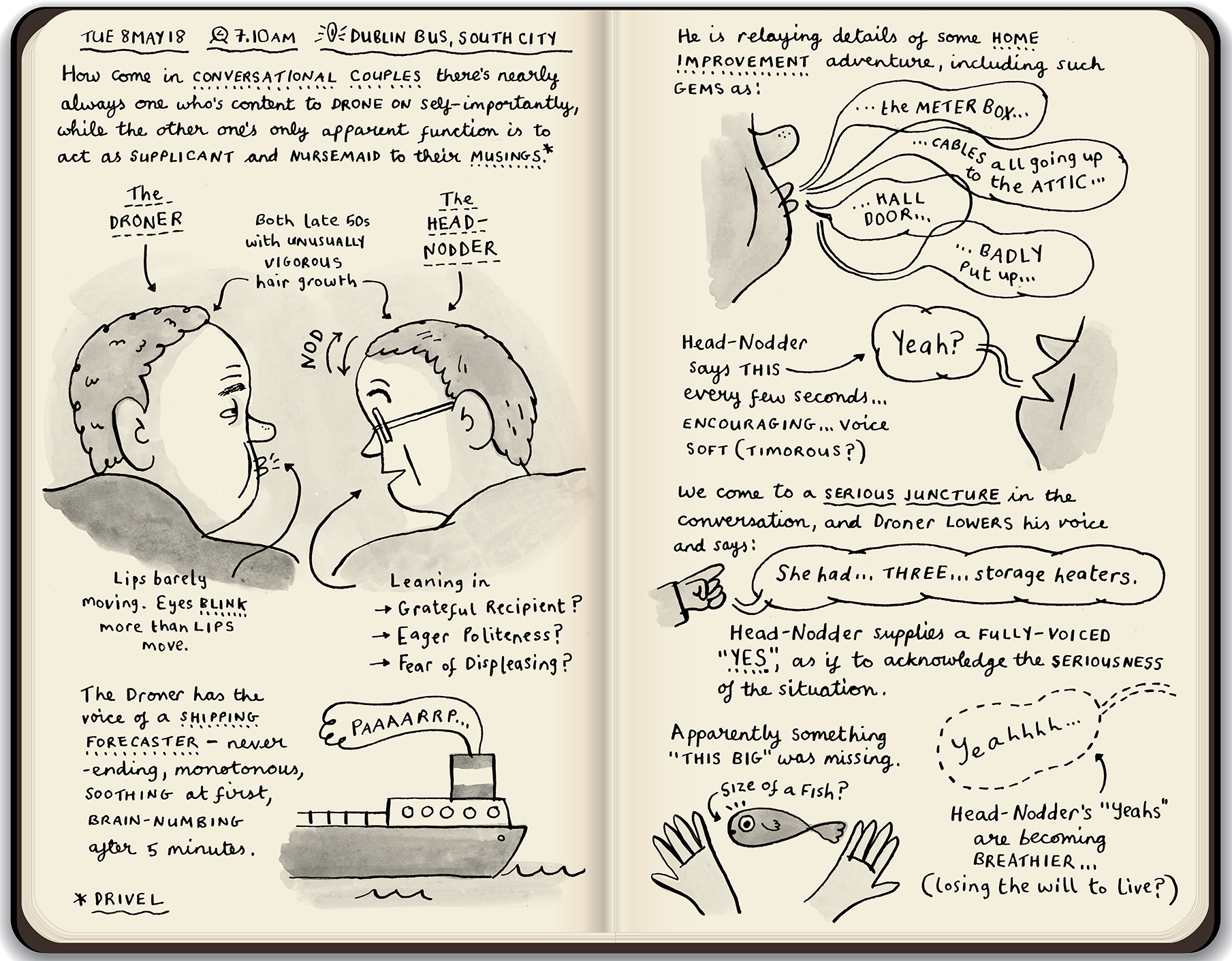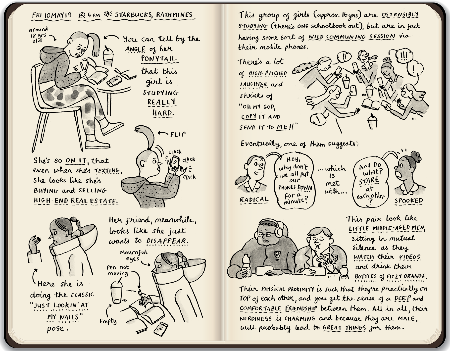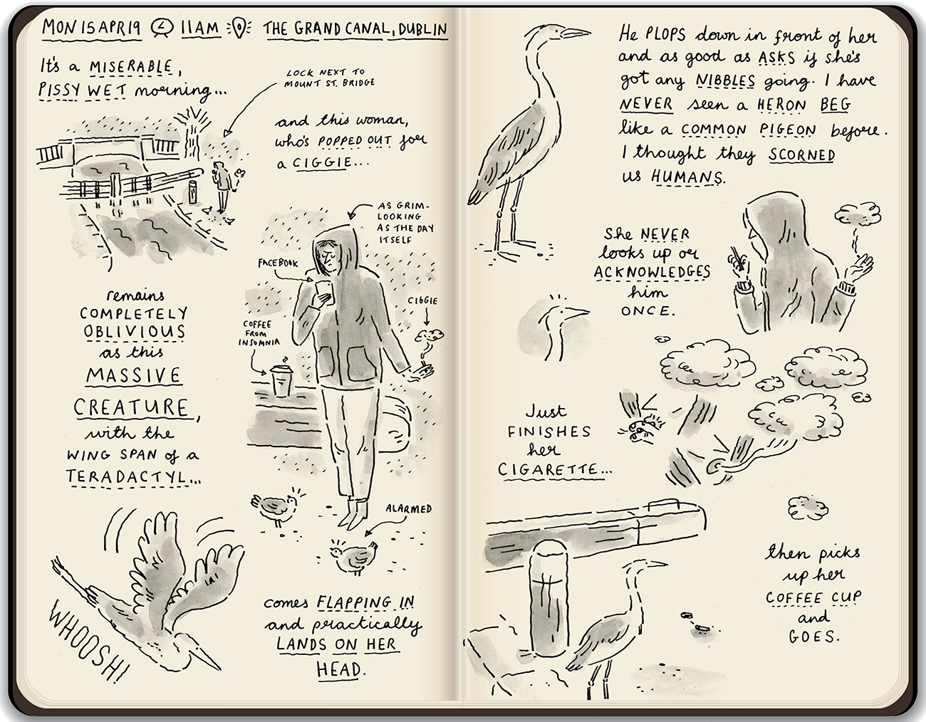 Here's a selection from my urban diary series that ran from 2017 till the outbreak of the pandemic in 2020. Based in Dublin City, it recorded observational snippets from my daily commute, coffee shops, shopping centres and more. Check out my Instagram for the full archive.